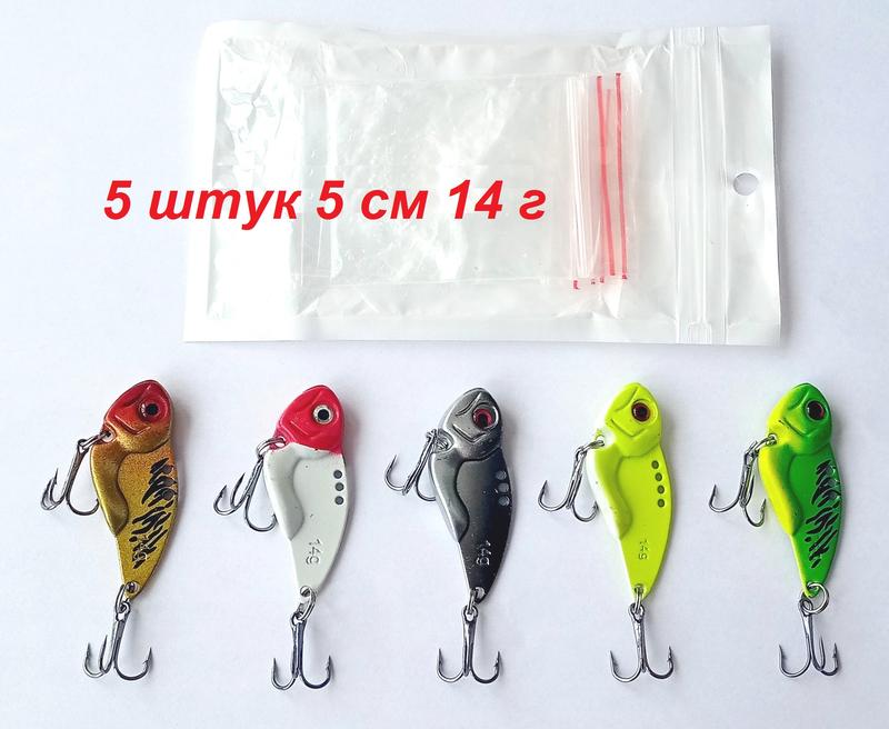 Набор блесен cicada vib 5 штук 3.8 см 7 г 4.5 см 10 г 4.8 см 12 г в боксе 5 см 14 г в паке...