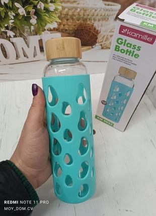 Пляшка kamille скляна з бамбуковою кришкою 550мл