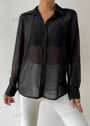 Шифоновая,легкая,прозрачная рубашка,летняя однотоная белый,черный