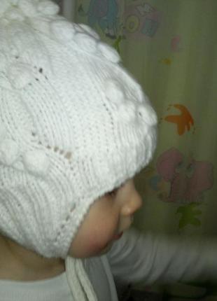 46-49 см обьем головы. демисезонная белоснежная шапочка ручной работы