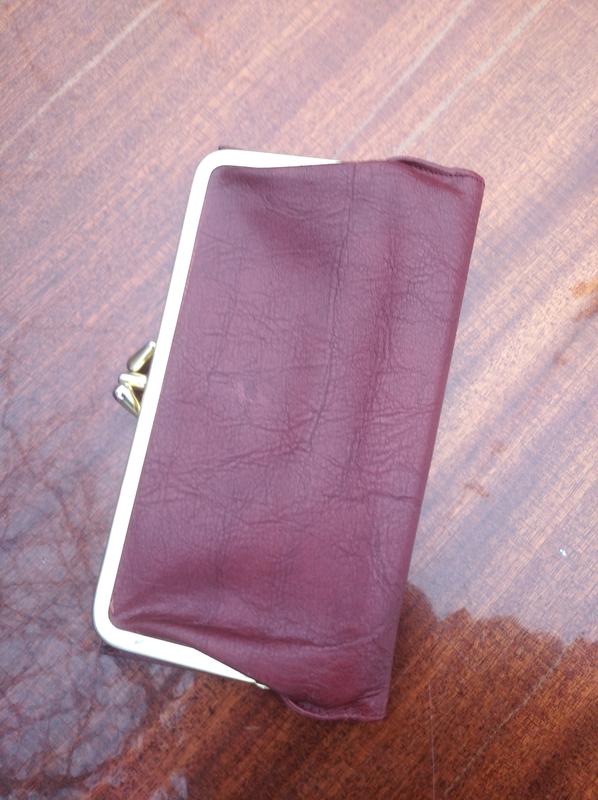 Гаманець із натуральної шкіри червоного кольору, в стилі ретро. Розмір 9х17см. На підкладці логотип "M".