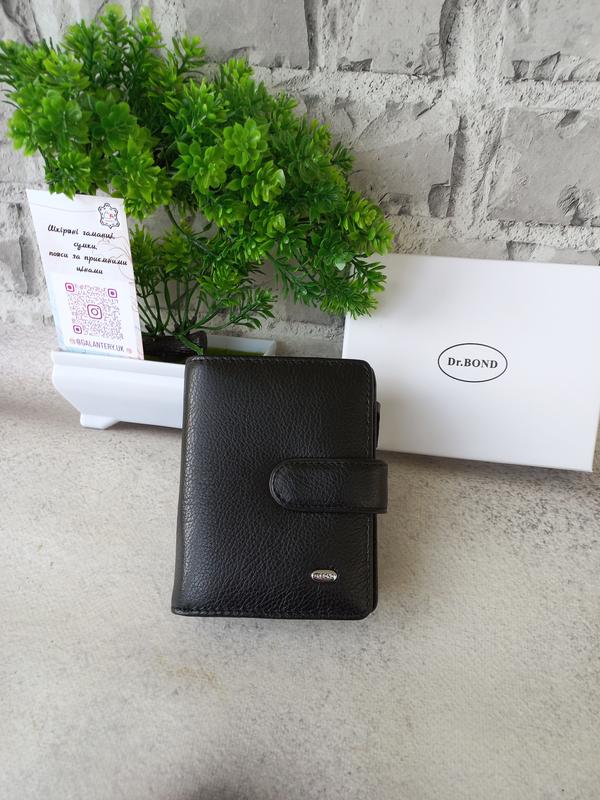 Виготовлений з натуральної м'якої шкіри з природною текстурою. Основне відділення закривається клапаном на кнопці. Всередині знаходиться одне відкрите відділення для банкнот, 10 кишень для візитних карток і 1 прозорий кишені. Зовні гаманця на зворотному боці знаходиться подвійна монетниця на блискавки.