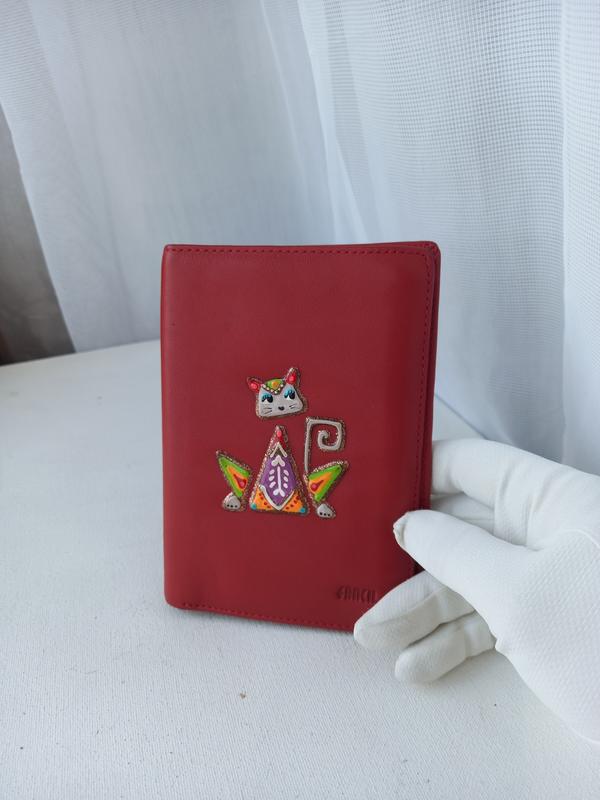 Шкіряний гаманець з аплікацією fancil, 11×15 мм, два відділення для купюр, відділення на замок, відділення для 10 карт одне відділення для документів, одне відділення длядрібних банкнот. мінімальні сліди використання.