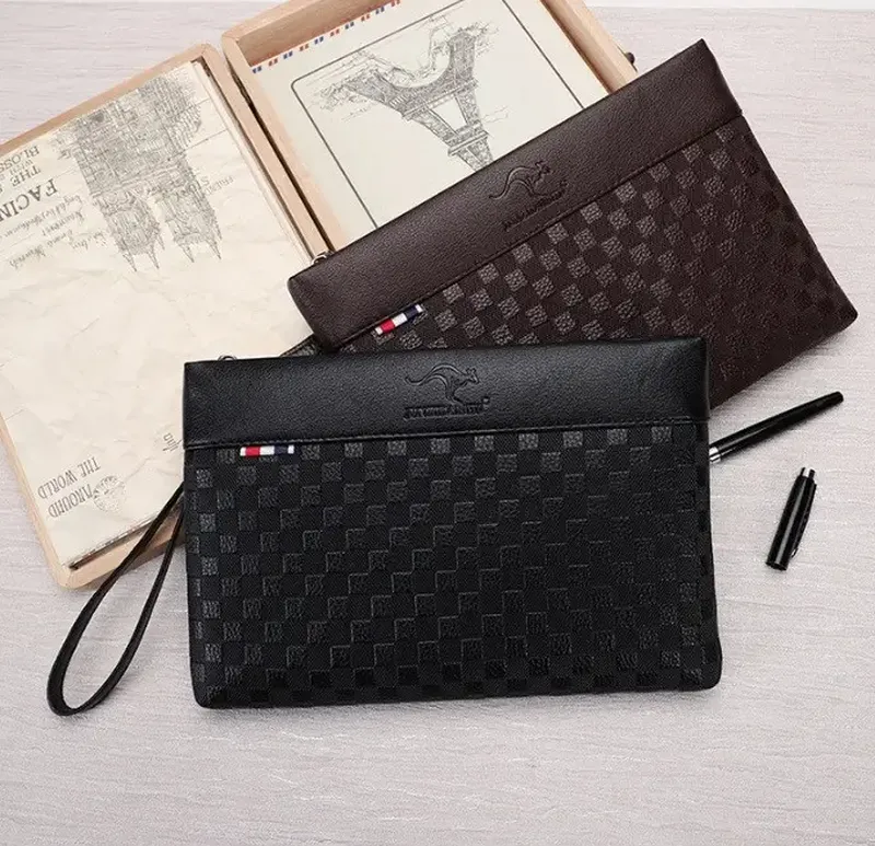 Великий чоловічий клатч барсетка кенгуру, гаманець сумка на ремінці мужской кошелек клетка