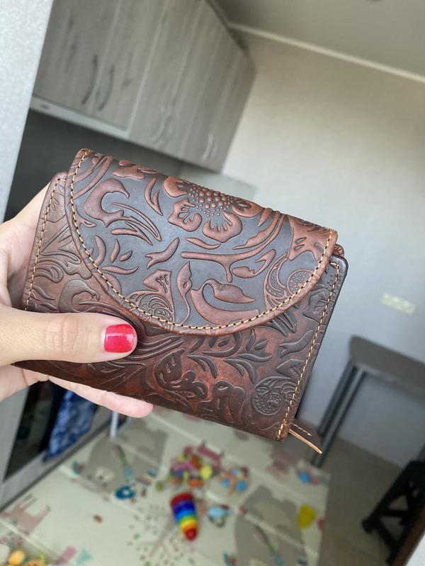 Новий гаманець із натуральної шкіри, дуже місткий, має багато відділів. Якість чудова.
