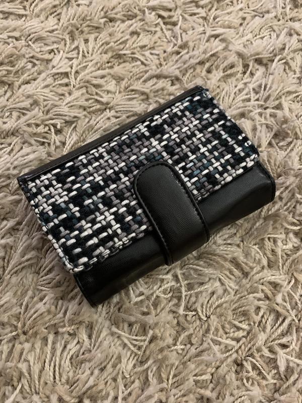 Состояние отлично. Без дефектов и нюансов. Цвет черный. Качественный кожзаменитель, вставка из твида. Функциональный - в середине много отделов и карманов. Застежка - кнопка. Заміри на фото.