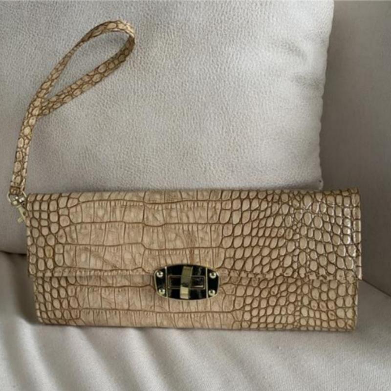 Елегантний жіночий гаманець із штучної під крокодилячі шкіри. Розмір: 24х12 см - 2 окремих відділи для купюр - окремий внутрішній відділ на замочку - кишеньки для карток / візиток Застібка на поворотному механізмі