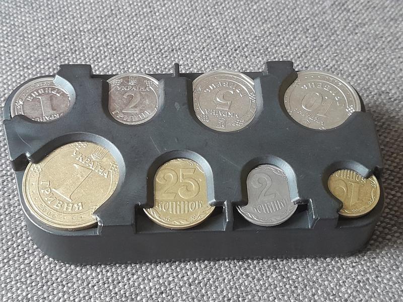 Особливий дизайн і модний стиль. Не втрачайте час у пошуках потрібної монети. Тепер усі вони можуть зберігатися в одному місці та зі швидкою легкістю будуть надані для вашого користування. Органайзер компактний і міцний. Тепер усі монети доступні вам і жодна з них не загубиться. Щоб уникнути пошкодження, не рекомендується вкладати монети в монетницю із зусиллям, тиском переповнюючи її. Підходить для всіх українських монет, крім 1 гривни старого зразка. В одну клітинку помістилося шість монет номіналом дві гривні. Матеріал: Пластик Колір: чорний Розмір: приблизно 102x53x24 мм Продається без монет