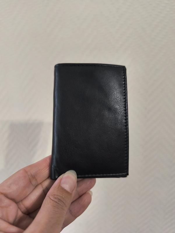 Чорний шкіряний чоловічий гаманець 7.5\10.5 см, відділення для купюр 21 см Натуральна м'яка шкіра, без монетниці, без застібки.