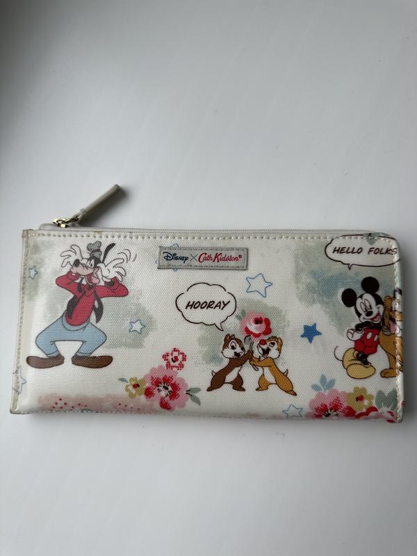 Фірмовий гаманець портмоне Cath Kidston Mickey Mouse! Оригінал Колір: слонова кістка Заміри: довжина 22см, ширина 10,5см Має безліч відділень на купюри + відділення на копійки на замочку+ відділення на картки + потайні. 100% натуральний котон ( воскований) Стан новий, без дефектів Ціна 850грн