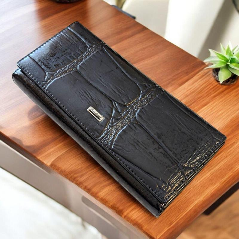 Женский лаковый коричневый кошелек на магните с застежкой поцелуйчик 19*9.5 см чорний