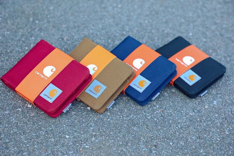 Гаманець з нашивкою лого Carhartt Артикул: art7201 Гаманець з текстилю CARHARTT WIP Кольори: чорний, синій - одне відділення для купюр - п'ять відділень для карток та одне для копійок на кнопочці - брендинг на зовнішній стороні Заміри: - висота 9,5 см - довжина 11 см (у складеному вигляді) - ширина 2 см sla