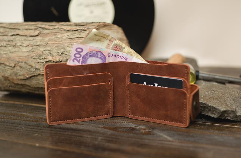 Класичний гаманець для зберігання готівки та карток. - Натуральна шкіра crazy horse -повністю ручна робота - розмір в зложеному вигляді: 9*11,5 см