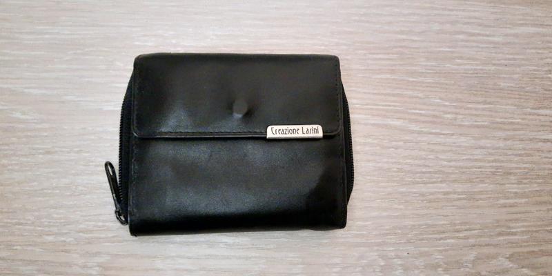 Кожанный кошелек, черного цвета, много отделений для карт. Размер в сложенном виде 11.5/9.5см,в разложенном 23.5/11см
