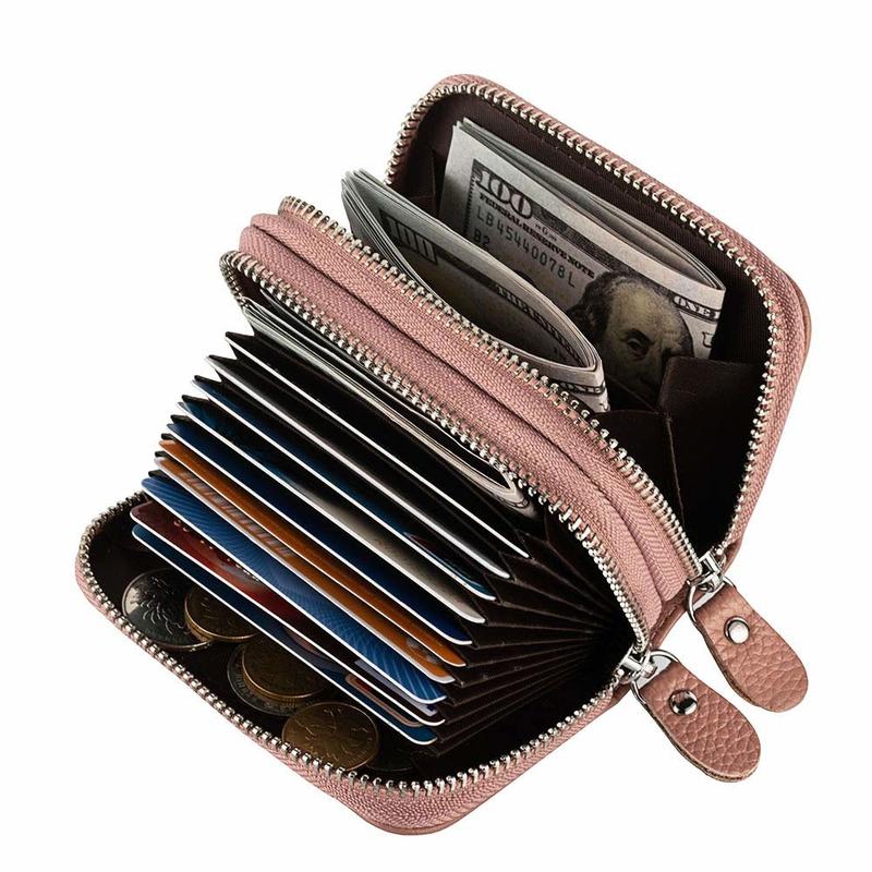 Чудовий подвійний шкіряний картхолдер на блискавці гаманець візитниця з натуральної шкіри