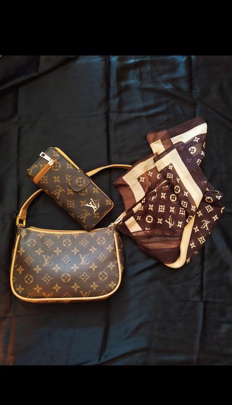 Сумочка розмір 23*15*5 Всередині кишенька на блискавці довжина ремінця 50 на сумочці збоку дефект гаманець 18.5*9 хустку 160*52 є пари затяжок, але на вигляд не впливає ціна за все