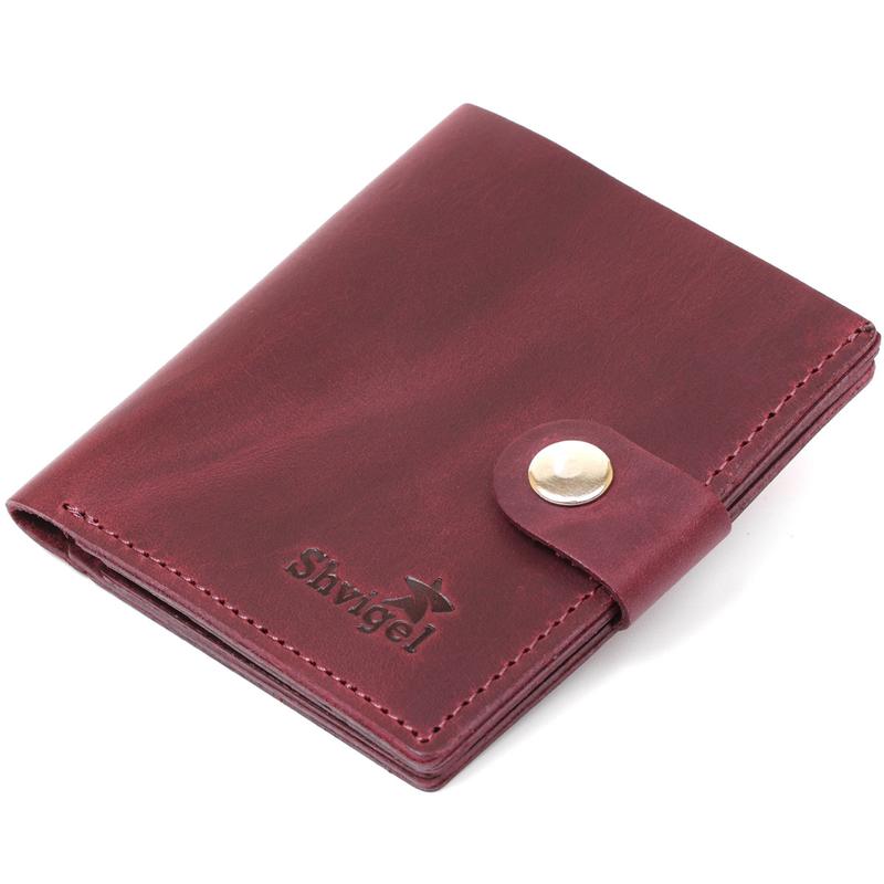 Материал: натуральная кожа. Цвет: вишневый. Размеры (ШхВхГ, см):9х10х1 см. Страна производитель: Украина. Бренд: Shvigel. Описание: - закрывается на хлястик с кнопкой; - 1 отделение на всю длину; - 2 слота для карточек; - потайной карман; - монетница на кнопке. Замечательное женское портмоне в темно-вишневом цвете, что смотрится очень стильно и красиво. Имеет гладкую матовую фактуру, которая очень приятная на ощупь. Материал изготовления - натуральная износоустойчивая кожа высокого класса. Закрывается аксессуар на хлястик с кнопкой. Такое портмоне прекрасно подойдет на подарок на любой праздник.