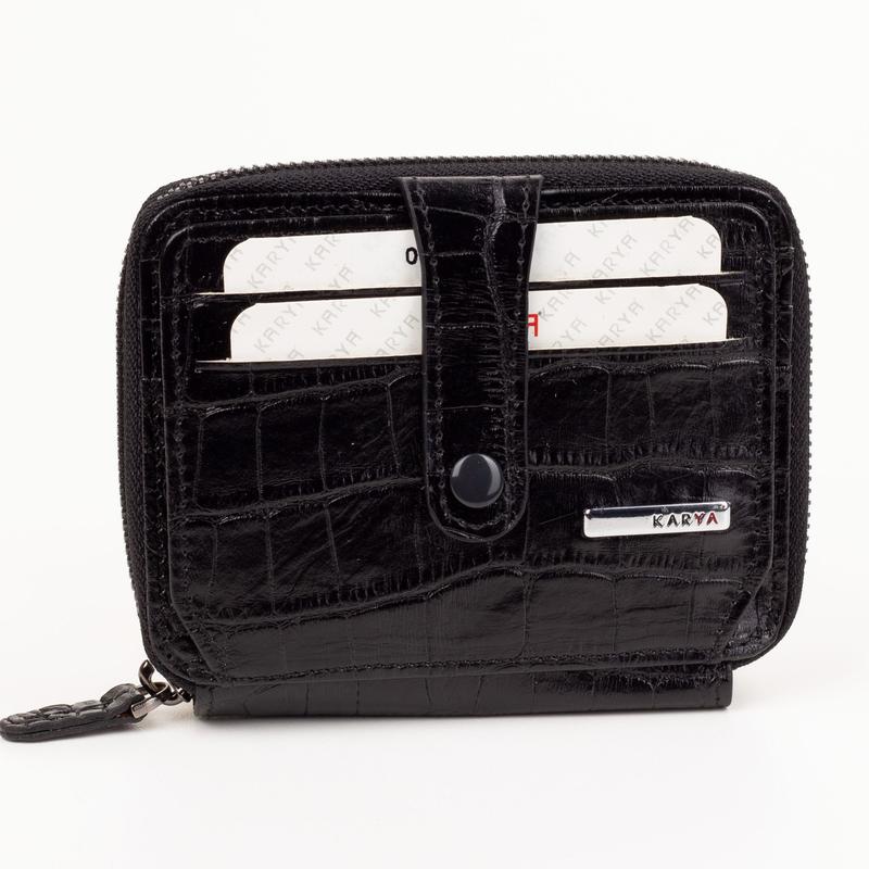 Шкіряний картхолдер з відділенням для купюр Karya 0024-53 чорний Гаманець картхолдер від Karya Дуже практична модель гаманця картхолдера Karya 0024-53, яка складається з: - 1 відділення для купюр - 9 відділень для карток - 2 віконець-сіточка - 2 маленьких кишені. Натуральна шкіра дуже практична в повсякденному використанні і такий гаманець прослужить Вам довгі роки. Розмір картхолдера Karya 0024-53 - 11*9*2 див.