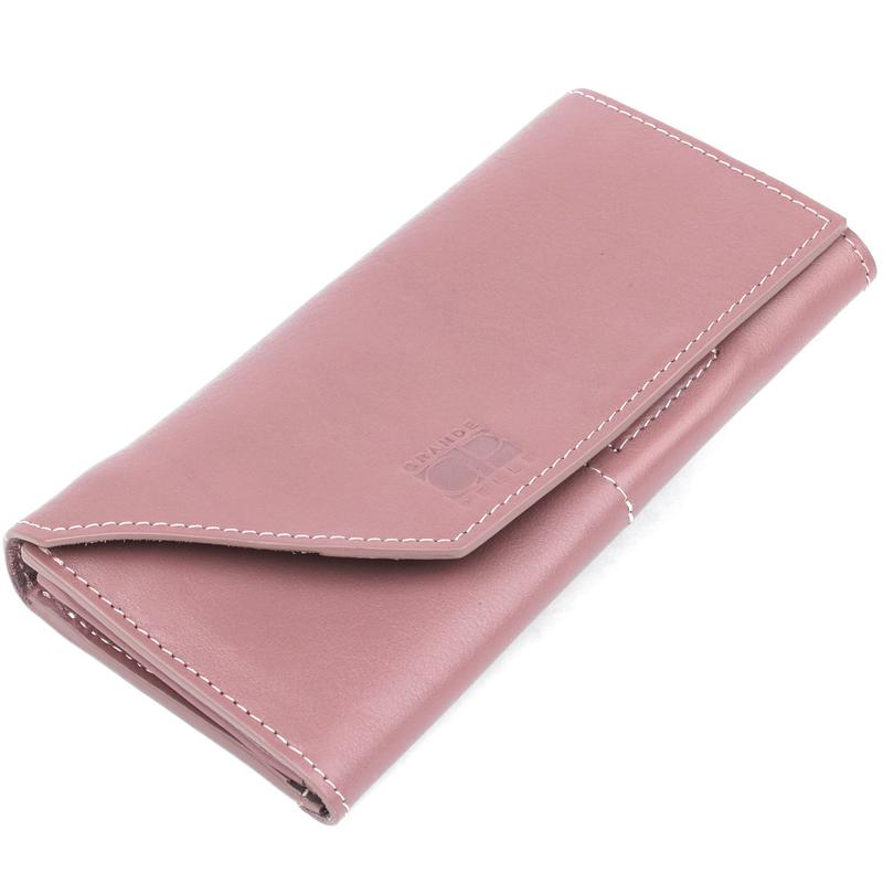 Материал: натуральная кожа. Цвет: розовый. Размеры (ШхВхГ, см): 20х10х2 см. Страна производитель: Украина. Бренд: Grande Pelle. Описание: - закрывается клапаном с магнитом; - 3 отделения на всю длину; - отделение для монет на молнии; - 8 слотов для карточек. Замечательный женский кошелек от известного производителя в стильном лаконичном дизайне. Выполнен аксессуар из натуральной кожи высокого качества, которая очень мягкая и приятная на ощупь. Цвет изделия - розовый с серым оттенком, фактура - гладкая. Закрывается кошелек с помощью клапана на магните, на практике это очень удобно и практично.