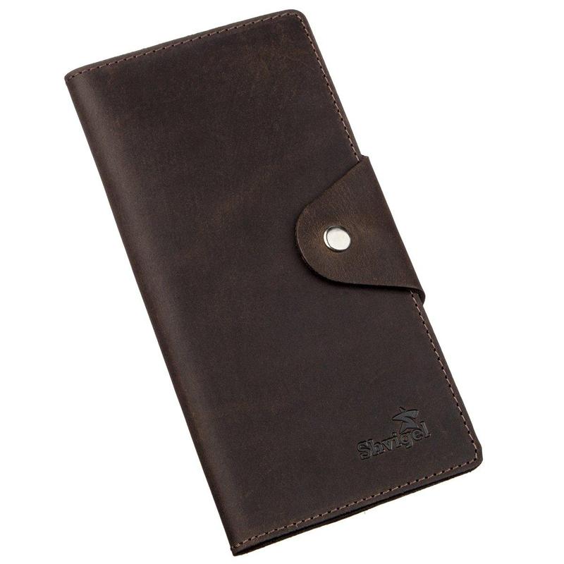 Бумажник вертикальный из винтажной кожи на кнопках shvigel 16180 коричневый