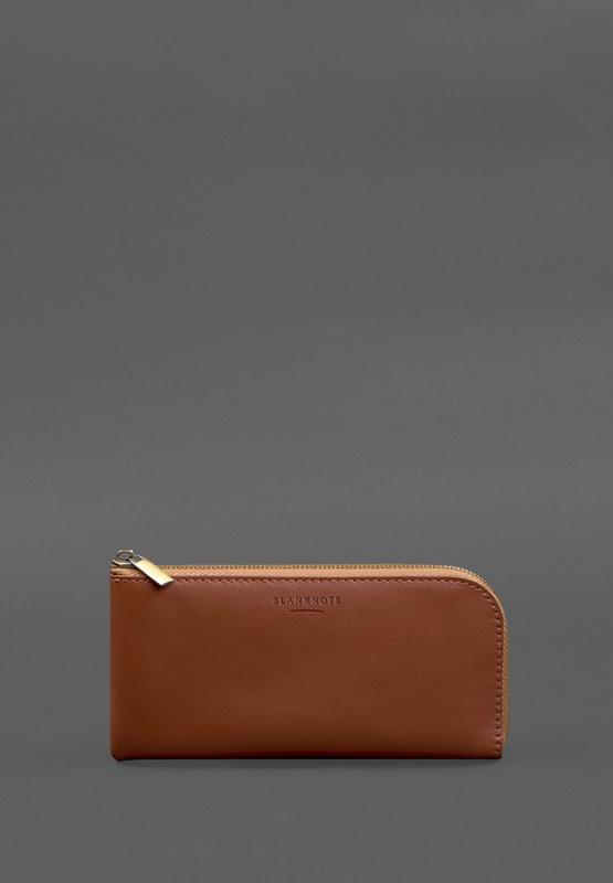 Шкіряне портмоне-купюрник на блискавці 14.1 світло-коричневе