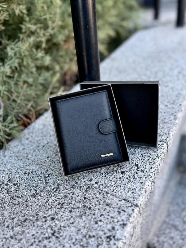 Стильно, зручно, надійно – це ідеальний вибір для успішного та стильного чоловіка ✔️Портмоне упаковано у гарній фірмовій коробочці ✔️Колір: чорний ✔️Натуральна шкіра ✔️Розмір: 12см х 9,5см ✔️Характеристика: дві секції для банкнот, одна з них відділення на змійці. -7 слотів для кредитних карток та монетниця на кнопці -3 слоти під прозорою плівкою + 1 закритий під які ви можете поставити фото або документи