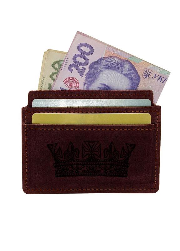 Картхолдер-визитница из натуральной кожи бордового цвета с лазерной гравировкой от украинского производителя Bermud ™. В него с легкостью поместятся десяток купюр, проездной, несколько платежных карт и пропуск на работу. Размер 10,0*7,5см. Имеет 2 отделения для карт и визиток и один карман для сложенных купюр. Аксессуар сделан из натуральной кожи «Крейзи Хорс» и прошит прочной ниткой. Применение этих материалов гарантирует надежность швов. Кожа «Крейзи Хорс» по своим свойствам может иметь визуальные царапины и потертости, которые появляются и пропадают в процессе пользования. Это придает изделию стиль ретро. Нанесенный рисунок с помощью лазерной гравировки устойчив к физическим воздействиям. Изделие будет служить владельцу долгие годы. Материал - натуральная кожа «Крейзи Хорс». Размеры - 10,0*7,5см. Отделения - 3 шт (2 отд. для карточек + 1 отд. для сложенных купюр).