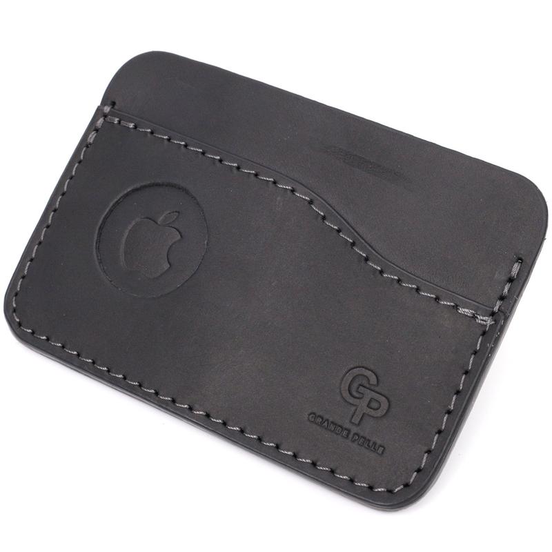 Материал: натуральная кожа; Цвет: черный; Размеры (ШхВхГ, см):10х7см; Страна производитель: Украина; Бренд: GRANDE PELLE. Описание: - 2 отделения для карт; - держатель для смарт трекера Apple AirTag; - упакован в фирменный чехол; Горизонтальный удобный кожаный картхолдер ручной работы из натуральной высококлассной винтажной кожи. На лицевой стороне изделие имеет тисненый логотип производителя Grande Pelle. Аксессуар состоит из двух отделений под карточки. Кроме удобного функционала фишкой этого картхолдера является держатель для смарт трекера Apple AirTag, это современное устройство определяющее местонахождение вещи к которой он прикреплен. Благодаря компактным размерам аксессуара он отлично помещается в кошелек, карман или сумку любого размера, что поможет пользователям легко найти потерянные или забытые вещи. Отличный аксессуар для современного человека. Внимание, смарт трекер Apple AirTag не идет в комплект с аксессуаром!