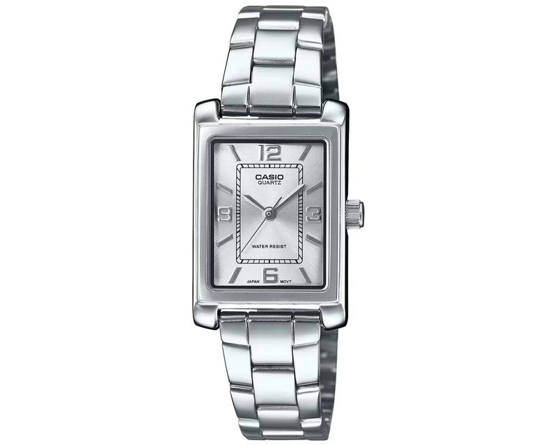Жіночий годинник Casio LTP-1234DD-7A (Standard Analogue) Жіночий наручний годинник Casio LTP-1234DD-7A з колекції Standard Analogue -- це елегантна класична модель, яка поєднує в собі стриманий дизайн, компактні розміри та надійність бренду Casio. Годинник ідеально підходить для щоденного носіння, офісного стилю та класичних образів. Корпус годинника виготовлений з латуні, має сріблястий колір та квадратну форму, що виглядає вишукано та акуратно на жіночому зап'ясті. Розміри корпусу становлять 32 × 21 мм, а товщина лише 7,4 мм, завдяки чому модель виглядає легко та не перевантажує руку. Годинник рекомендований для зап'ястя до 15 см, вага -- 57 грамів. Циферблат виконаний у сріблястому кольорі, має стрілочну індикацію з чіткими індексами, що забезпечує зручне та швидке зчитування часу. Циферблат захищений мінеральним склом, яке стійке до подряпин та щоденного зносу. Годинник працює на кварцовому механізмі, який забезпечує точний та стабільний хід. Модель не має підсвітки, що підкреслює її класичний, мінімалістичний стиль. Водозахист 30 WR забезпечує захист від бризків води, дощу та під час вмивання, але не призначений для купання чи плавання. Браслет виготовлений зі сталі, має сріблястий колір та надійну застібку. Обхват браслета регулюється від 12 до 19 см, що дозволяє легко підігнати годинник під індивідуальний розмір зап'ястя. Комплектація: - оригінальний жіночий годинник Casio - офіційний гарантійний талон 24 місяці - фірмове пакування - інструкція з експлуатації Casio LTP-1234DD-7A -- це стильний, компактний та універсальний жіночий годинник, який стане чудовим аксесуаром на кожен день або елегантним подарунком.