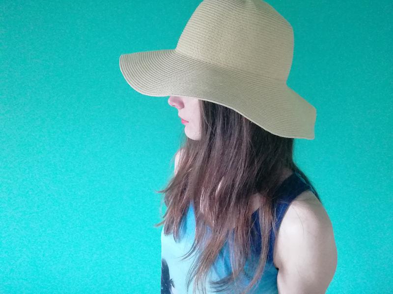 Одягнена на обсяг 58 см, можна на менше. Ширина поля 10 див.