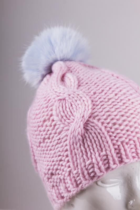 Ніжна рожева шапочка з блакитним помпоном від SolomiaChoiceUA виконана з 100% мериносової вовни і хутрового помпона кролика небесно-блакитного кольору . З усіх питань звертайтеся!!! Багато шапок в наявності і під замовлення!!!!