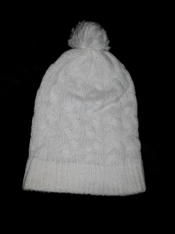 Шапочка біла з бубончиком.В'язка косичка.Дуже молодить і освіжає.
