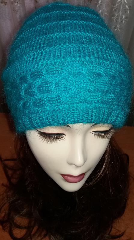 Шапка в'язана смарагдово-зеленого кольору з ангори . двошарова в'язка. розмір : s-l