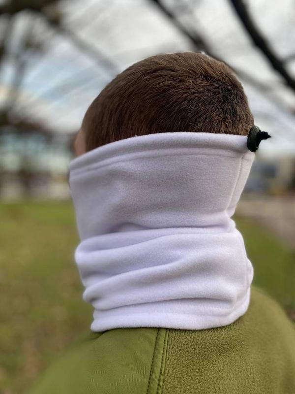 Баф флісовий щільність: 300гр/м з регулюванням еластичною гумкою із фіксатором колір білий