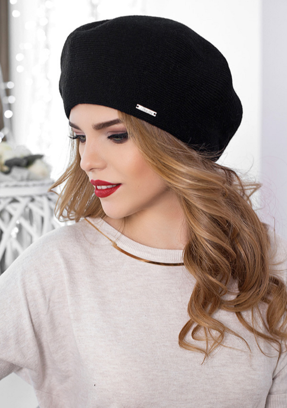 Берет связан из полушерстяной пряжи плотной вязкой и декорирован небольшим металлическим логотипом. Этот женственный и стильный головной убор подчеркнет нежность и красоту наряда и надежно согреет голову от холода. Производитель Украина. Берет без подкладки. 30% шерсть альпака, 30% шерсть мериноса, 30% акрил, 10% эластан Сезон осень/весна, мягкая зима. Размер 56-59 см.