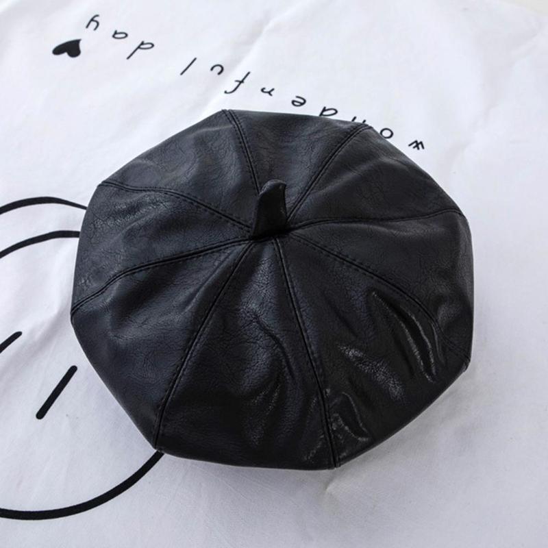 Жіночий берет зі штучної шкіри чорний 55-57р one size (2654)