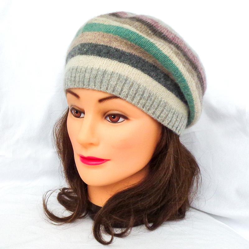 Женский вязаный берет из шерсти и ангоры с люрексом шапка шапочка