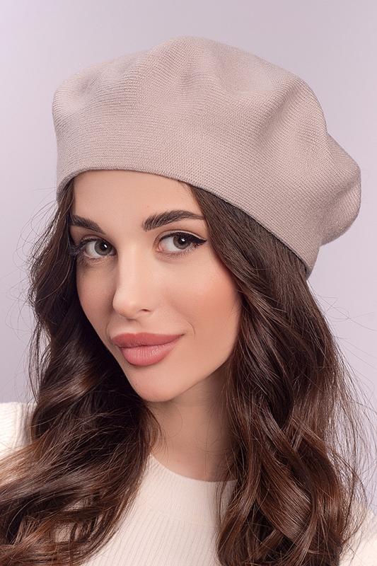 Демісезонний берет двошаровий зв'язки бежевий