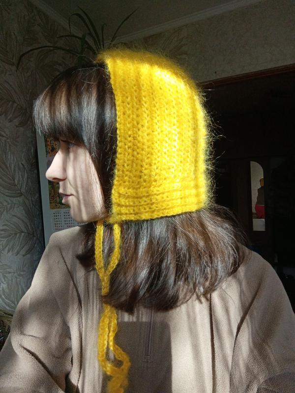 Чепчик ручної роботи Універсальний розмір Гарно захищає від вітру та холоду, прикриває вуха і не дасть змерзнути В'яжу на замовлення з різної пряжі Чепчик жовтогарячого кольору на фото виготовлений з мохеру