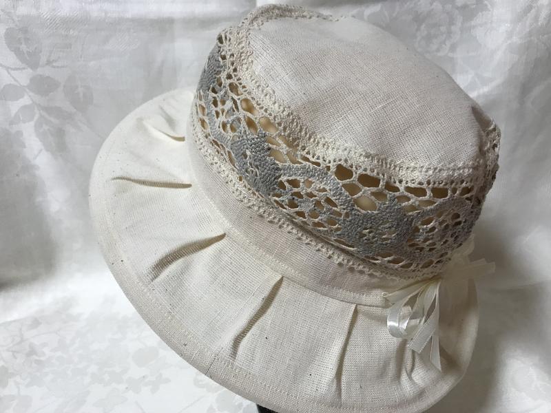 Льняная шляпа с кружевами и драппированными полями