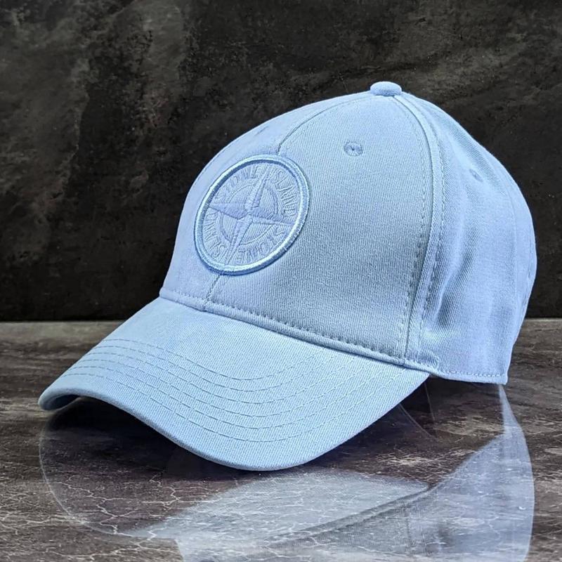 Голубая кепка stone island с вышитым логотипом блакитна кепка stone island з вишитим лого