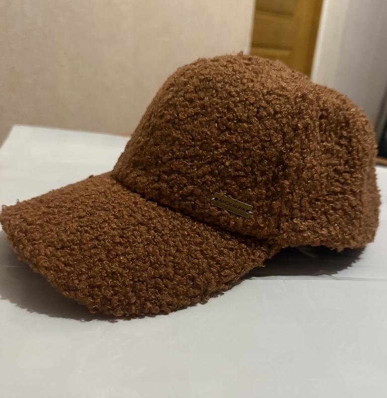 Кепка з плюшу коричневого кольору Стильна та якісна Заді регулюється на липучці