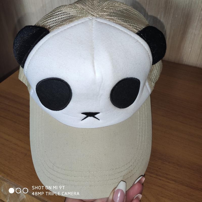 річна кепка в сітку..дизайн "панда".. козирок гнучкий..обсяг 55-62cm..в 2-х кольорах...бежевий та сірий