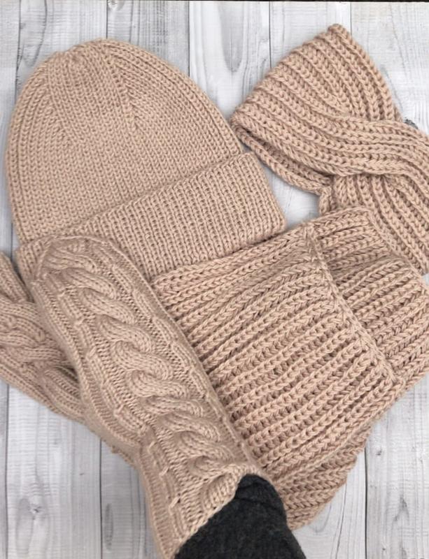 В’язаний набор zara шапка шарф ручна робота пов’язка чалма мітенки рукавички в’язані молоч...