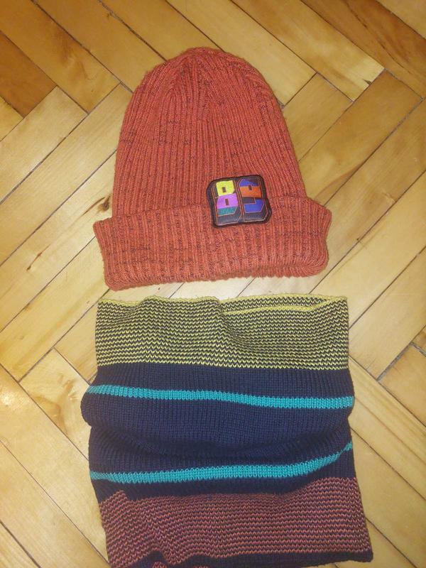 Комплект Reserved р.L На голову 54-56 Склад: 50% акріл, 50% бавовна Заміри: шапка: ширина - 23 см, висота - 25 см Подвійна плотна вязка хомут: ширина - 27 см, висота - 35 см Одинарні вязка, можна носити складений Гарно тягнуться Стан відмінний Ціна 180 грн. за комплект Шапка Outventure .54 Склад: 100% акріл Заміри: ширина - 25 см, висота - 22 см Тягнеться не сильно Стан відмінний Ціна 80 грн.