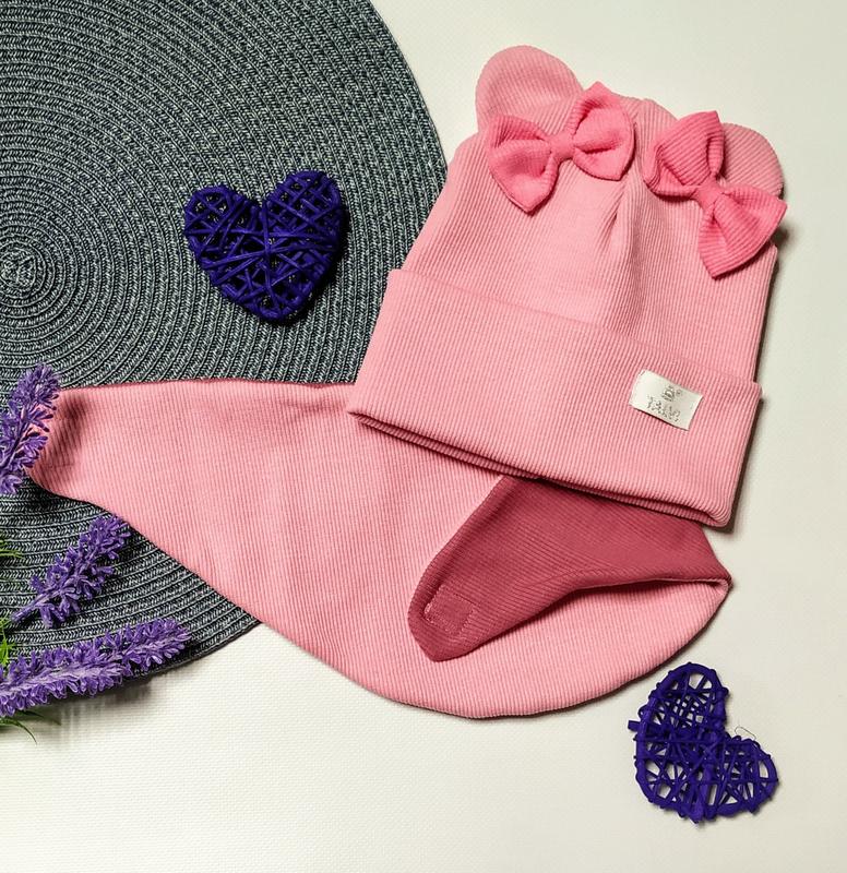 Трикотажна подвійна шапочка в комплекті із хомутиком.