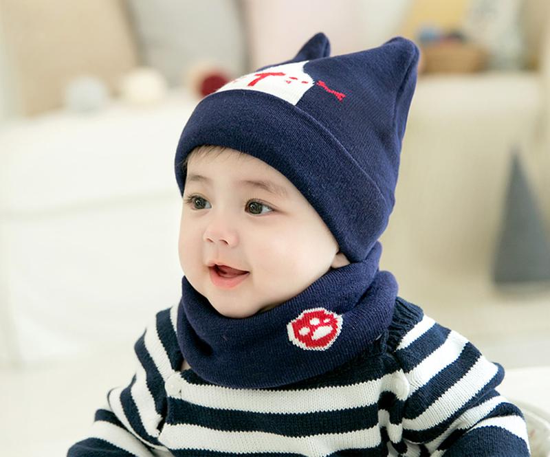 Шапка со снудом детская демисезонная синяя обхват 48-52