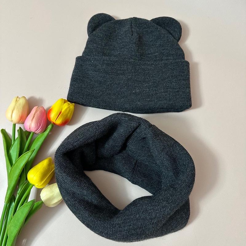 Демісезонний набір на дівчинку шапка з вушками та хомут базовий комплект