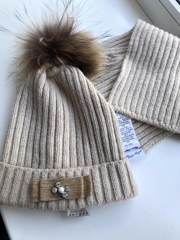 Комплект шапка і шарф з натуральним бубоном виробник Турція 💖для дівчинки 9-11 років