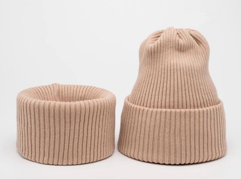 Детский демисезонный комплект шапка и бафф, детский осенний набор шапка и снуд, светлый бе...